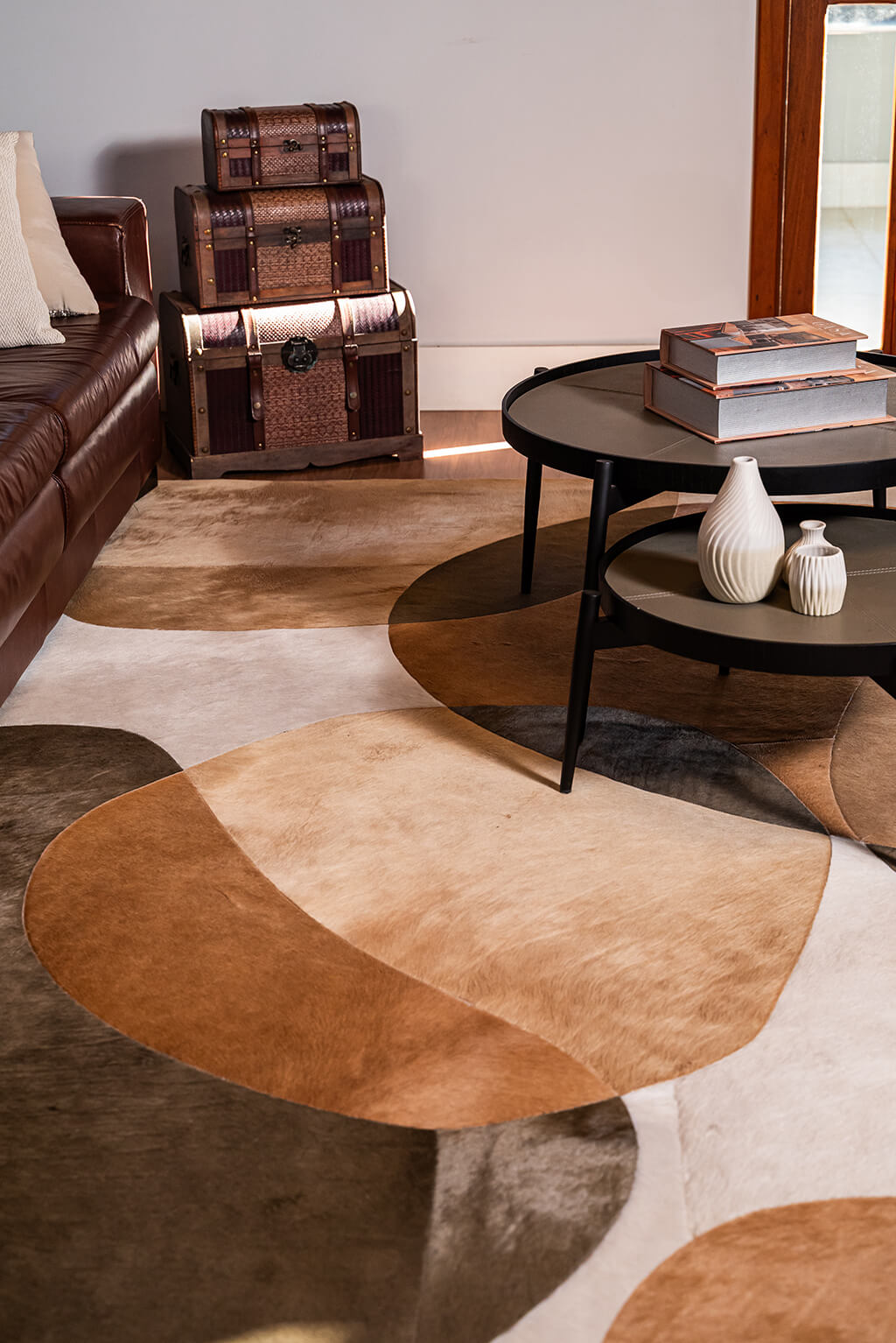Criar, desenvolver e produzir tapetes de couro com personalidade e acabamento impecável já é uma tradição antiga da Couro e Arte e a linha de produtos não para por aí, almofadas, pufes, poltronas e sofás complementam uma linha completa de produtos em couro para decorar ambientes personalizados e aconchegantes.
